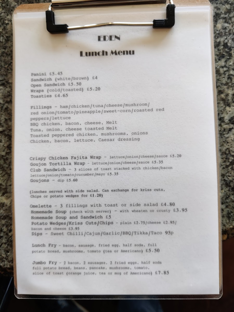 Welcome to Eden Coffee Shop, a hidden gem nestled in Glengormley, Newtownabbey. This cozy cafe, located at 27 Ballyclare Rd, is celebrated for its inviting atmosphere and excellent service. The menu boasts a delightful variety of dishes, perfect for breakfast or lunch. From satisfying paninis and wraps, including a savory crispy chicken fajita wrap, to hearty homemade soups and club sandwiches, there’s something for everyone.